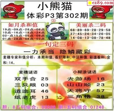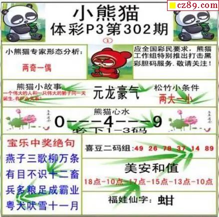 > 小熊猫2025302期体彩P3图谜